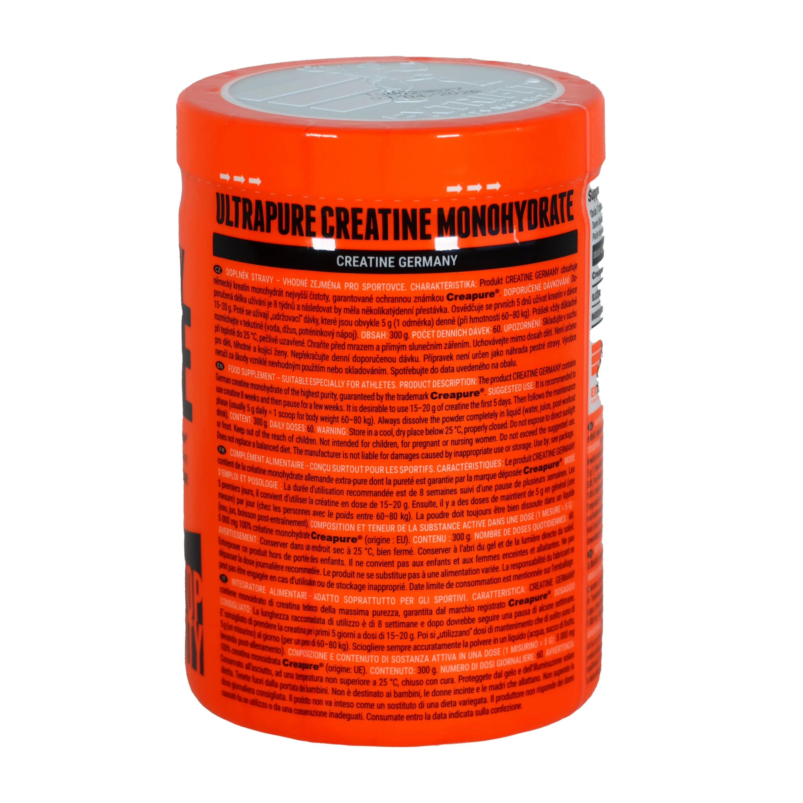 A kreatin az emberi szervezet természetes anyaga, amely lehetővé teszi az ismételt izommunkát és az izomrostok összehúzódását. A kreatin eredendően nem okoz függőséget vagy nem mérgező az emberi szervezet számára. A kreatin fokozott bevitele e termék formájában jelentős fizikai teljesítménynövekedést okoz az intenzív, nehéz izommunka intervallumai során (pl. edzéssorozatok a testépítő edzésben és a fitneszben). A hatás legalább napi 3 g kreatin bevitelével érhető el. A Creatine Germany termék kizárólag 100%-os tisztaságú és kiváló minőségű kreatin-monohidrátot tartalmaz, amely az egyik legerősebb termék, amelyet az erő- és gyorsaságorientált sportolók számára terveztek!