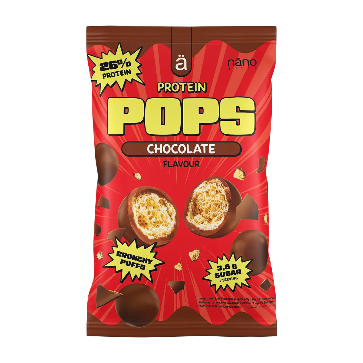 A Nanosupps Protein Pops a tökéletes mozi-nasi! Apró, ropogós szójafehérje golyók, amelyeket finom, cukormentes tejcsokoládéba mártottak. Egy zacskó pontosan egy adag, így nem kell aggódnia a kalóriák miatt.