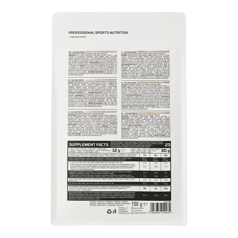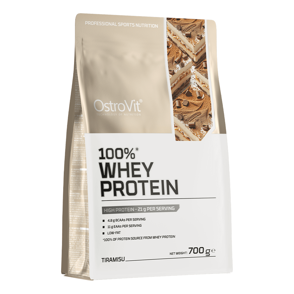 OstroVit 100% Whey Protein egy táplálékkiegészítő, amely tejsavófehérje-koncentrátum forrása, és akár 70% kiváló minőségű fehérjét tartalmaz. Ez egy olyan készítmény, amely elágazó láncú aminosavakat (BCAA) és esszenciális EAA aminosavakat biztosít a szervezet számára. Alacsony zsírtartalmú termék, amely por formában, különböző ízekben kapható, és sportolóknak, valamint azoknak készült, akik napi étrendjüket értékes makrotápanyaggal szeretnék gazdagítani.