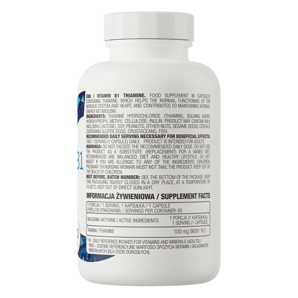 Az OstroVit B1-vitamin (tiamin) egy magas minőségű étrend-kiegészítő, amely hozzájárul a szervezet normális működéséhez. A tiamin, vagyis a B1-vitamin esszenciális mikrotápanyag, amely számos fontos folyamatban vesz részt.