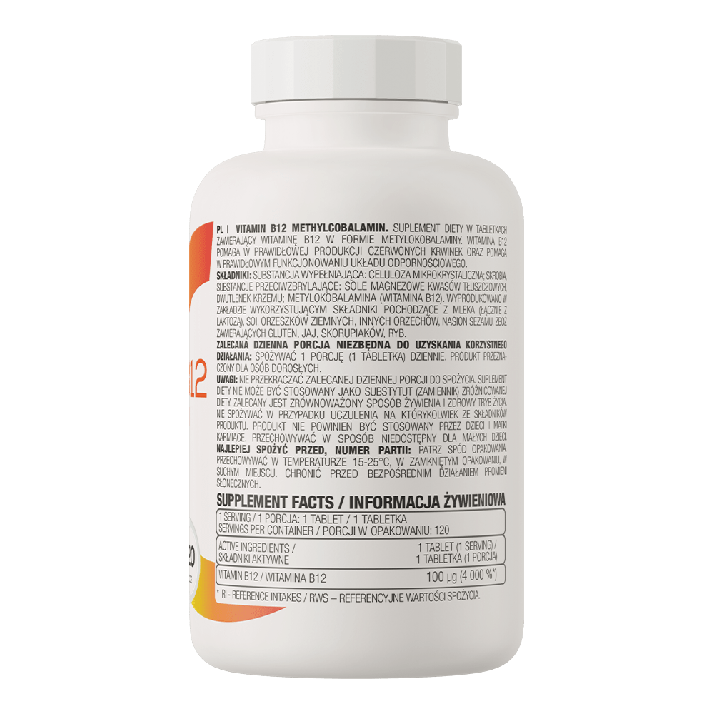 A B12-vitamin különféle formákban kapható, amelyek felszívódási és asszimilációs fokában különböznek egymástól. Az OstroVit metilkobalamint használ, egy olyan vegyületet, amelyet magas biológiai hozzáférhetőség jellemez, és amely könnyen felszívódik a szervezetben. Ez egy aktív forma, amely metilcsoportokat is biztosít a szervezet számára, ezért különösen ajánlott a metilációs folyamatokkal kapcsolatos rendellenességekkel küzdők számára. A metilkobalamin gyorsan felszívódik és tovább marad a szövetekben, ráadásul nem tartalmaz káros cianidot. Így az OstroVit étrend-kiegészítő értékes kiegészítője a napi étrendnek, amely biztosítja a legmagasabb minőségű mikrotápanyag-ellátást.